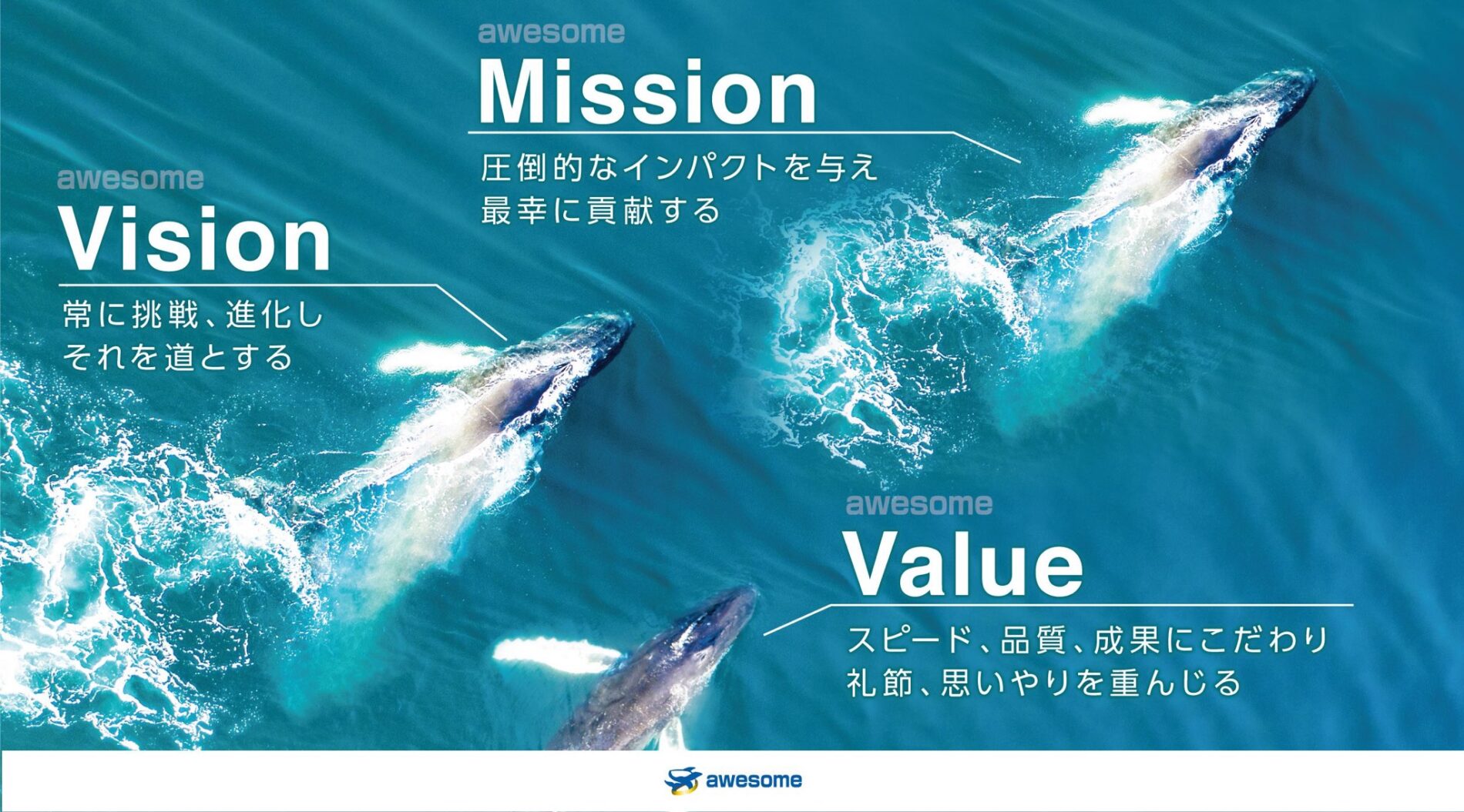 awesomeという単語は一般的には「驚くほど」という意味で使われますが、弊社の社名は「最高」という意味です。